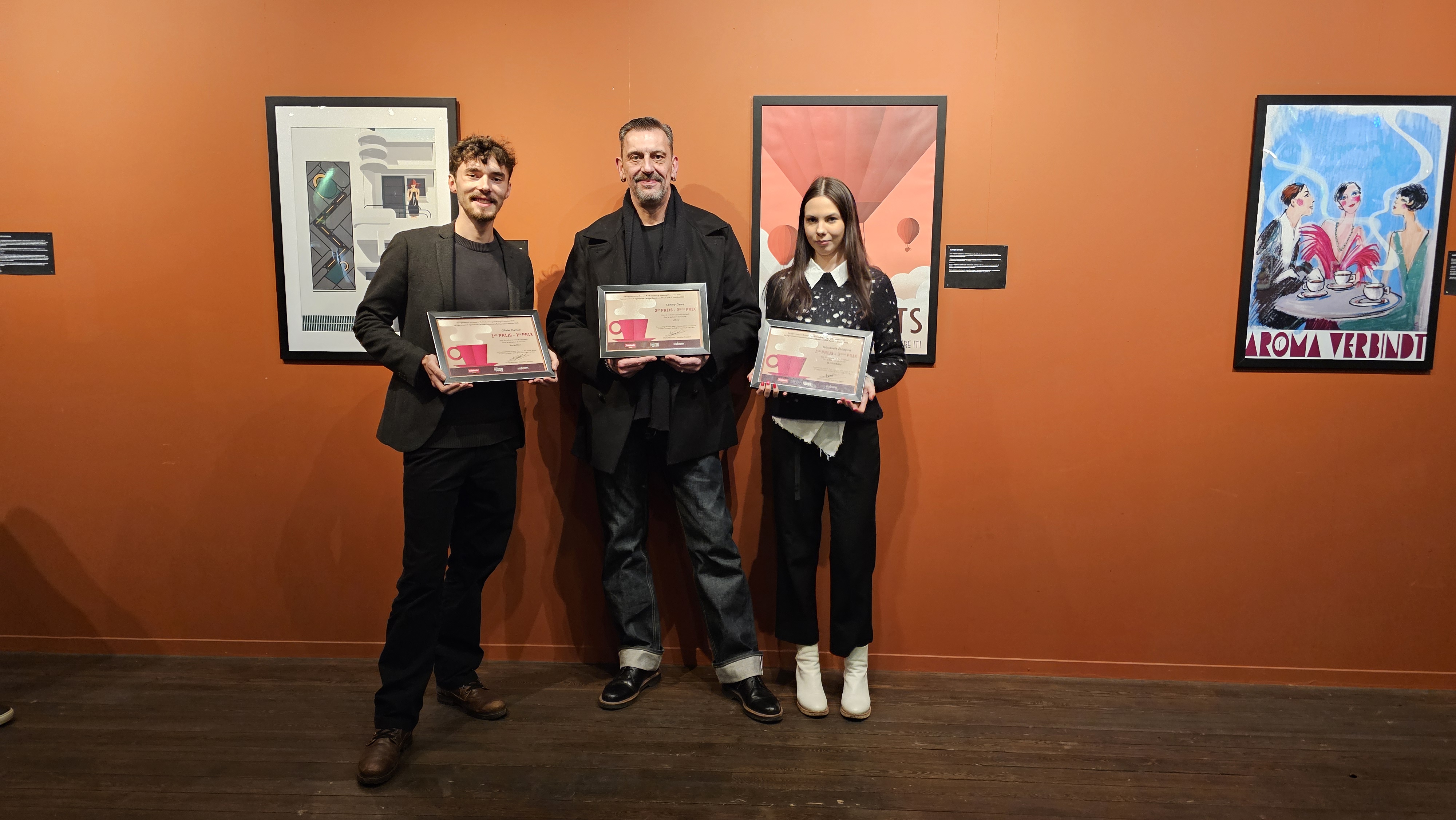 Hun werken — gedurfd, gevoelig of retrofuturistisch — verkennen de warmte, rituelen en aroma’s van koffie, terwijl ze hulde brengen aan de esthetiek van de jaren 1920. De laureaten van de wedstrijd werden bekendgemaakt tijdens de officiële vernissage die plaatsvond op woensdag 27 november 2025 in de Sint-Gorikshallen (Brussel).